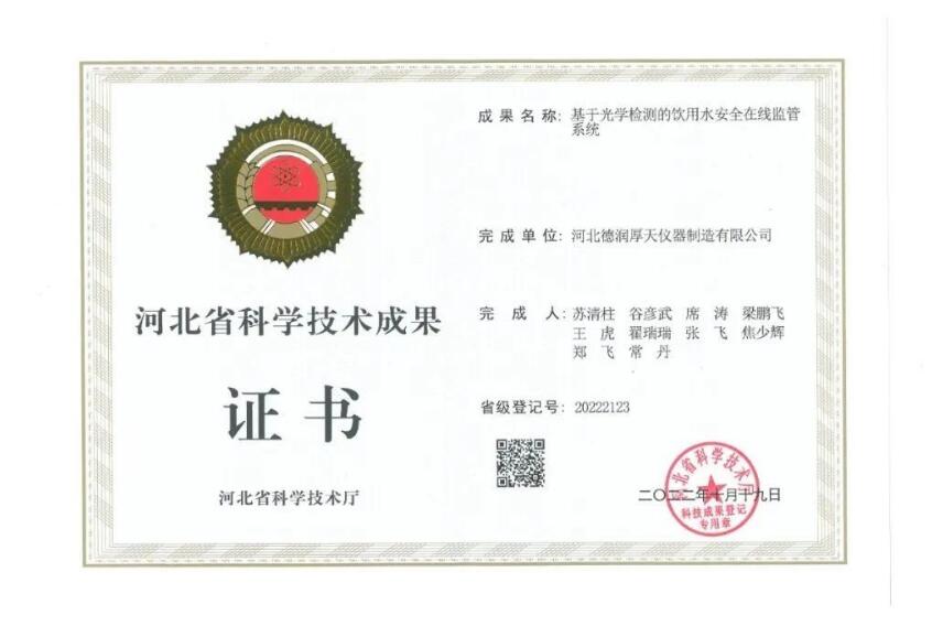 其监测数据可通过无线网络自动传输到管理平台,组成饮用水安全在线监管系统,集团“基于光学检测的饮用水安全在线监管系统”项目,已经通过相关专业领域专家组综合评分与评价,给予了“该系统的技术达到国内领先水平”的结论,并获得河北省科学技术厅“河北省科学技术成果证书”。2023年是贯彻落实党的二十大精神的开局之年,又是实施“十四五”规划承上启下的关键之年,站在新起点的中国电子信息博览会将持续作为创新“强磁场”,助力产业创新升级,为数字经济的高质量发展不断贡献力量。创新引领,协同发展。德润厚天自2008年创始以来,以高端水质采样器为创始,一直致力于水质采样、分析技术研究,促进行业技术发展,是知名的环保品牌。德润厚天将继续不断创新,积极进取,为美丽中国、健康中国贡献一份力量。