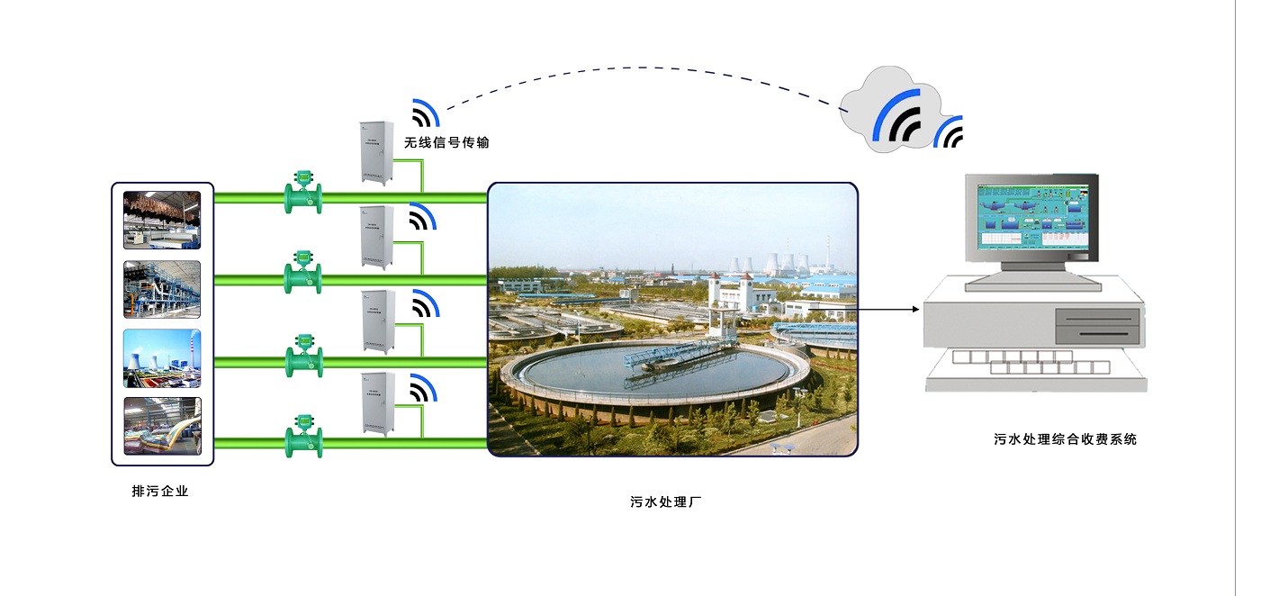 4) 收费合理、便捷:流量数据自动传输到污水处理综合收费系统,结合测得的污染物浓度,可自动计算出每个企业的污染物排放量、污水处理费,使收费变得科学、合理、方便。综合收费系统还可远程调取采样器状态,远程控制采样器及输水管道电动阀门。