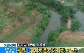 安徽池州河水被污染事件:因化工园违规排污,污染灌溉水源,这些水中含有大量有毒物质,造成安徽省池州市东至县香隅镇里的数千亩农田变成了荒地。